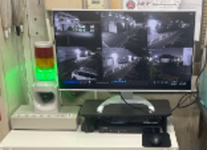 工場社員駐車場の監視カメラとしてCaメリーを6台設置し、赤外線センサー、警報装置を組み合わせて防犯を目的としたシステムを構築しております。侵入者があると警報装置から音声メッセージが流れ赤色灯が回転し、侵入者へ警告を行います。